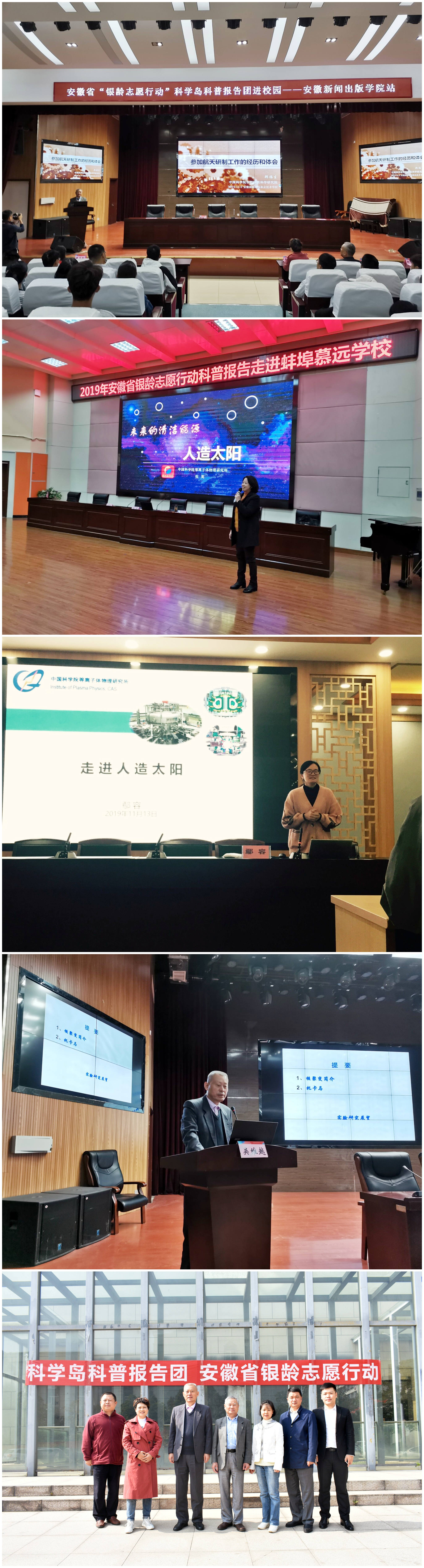 2019年11月5日-12月4日,为配合开展安徽省老龄工作委员会主办、安徽省老科协的“银龄志愿行动”活动,合肥研究院老科协组织科学岛科普报告团的韩福生、吴维越、张英等三位研究员与鄢容博士在安徽省内3所学校作了5场科普报告。
